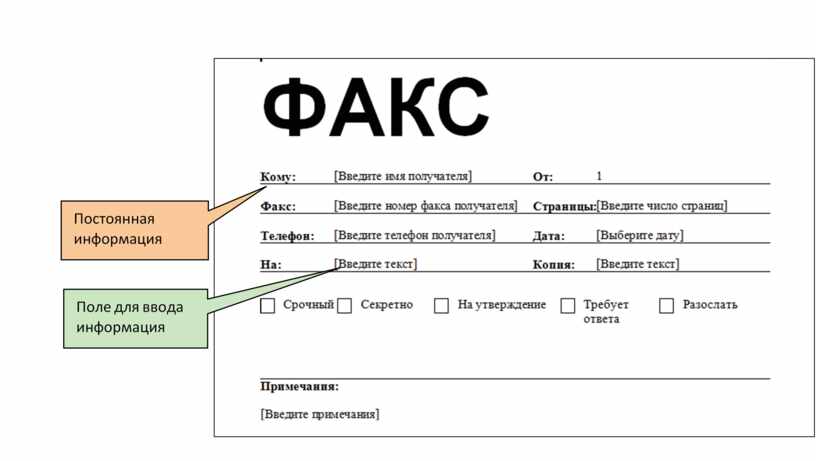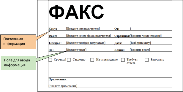 Например, шаблон факса содержит постоянную информацию («кому»,
