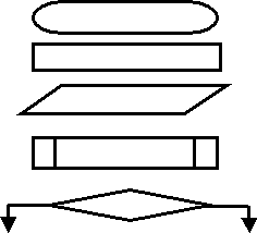 Начало и конец алгоритма на блок-схемах обозначают овалом, вводимые и выводимые переменные записываются в параллелограмме.