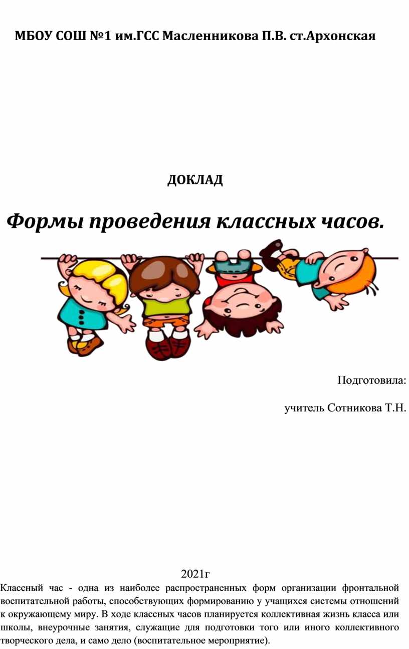Формы проведения классных часов.