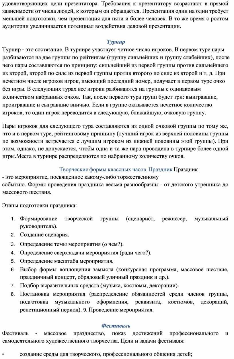 2. Выбор формы воспитательной работы, определение жанра и название мероприятия.