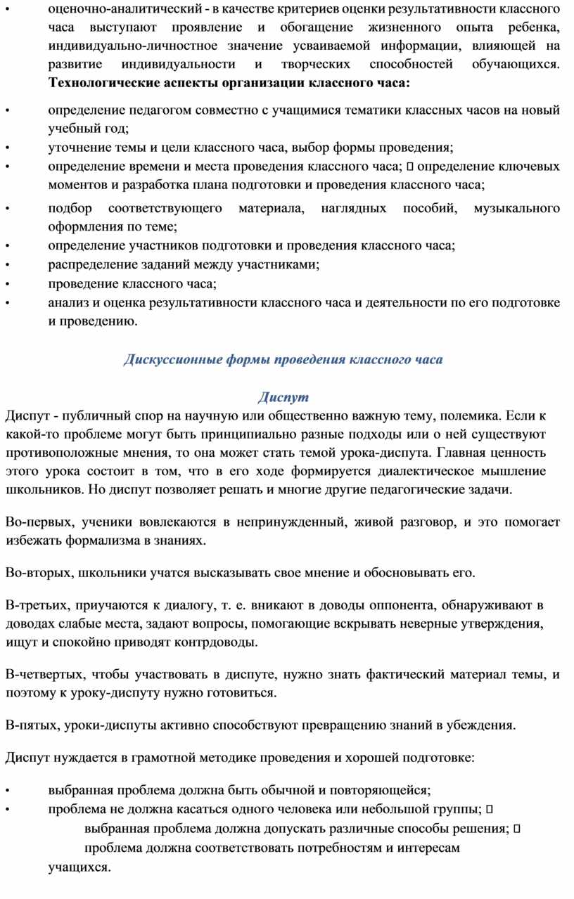 Дискуссионные формы проведения классного часа