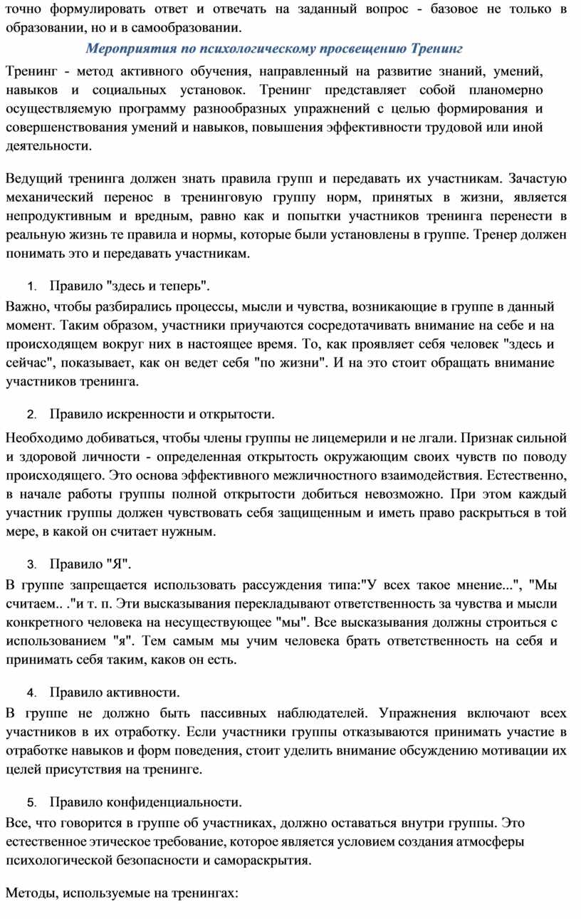 Методы, используемые на тренингах: