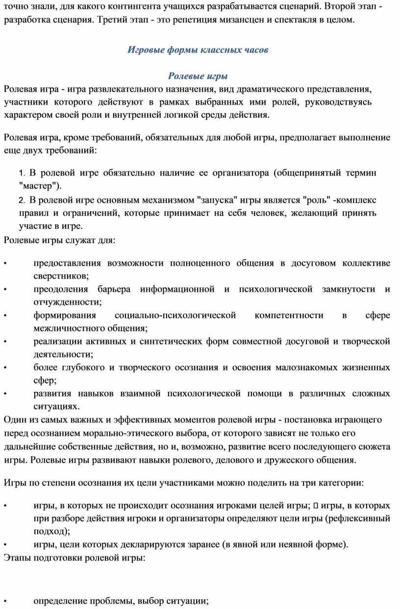 Этапы подготовки ролевой игры: