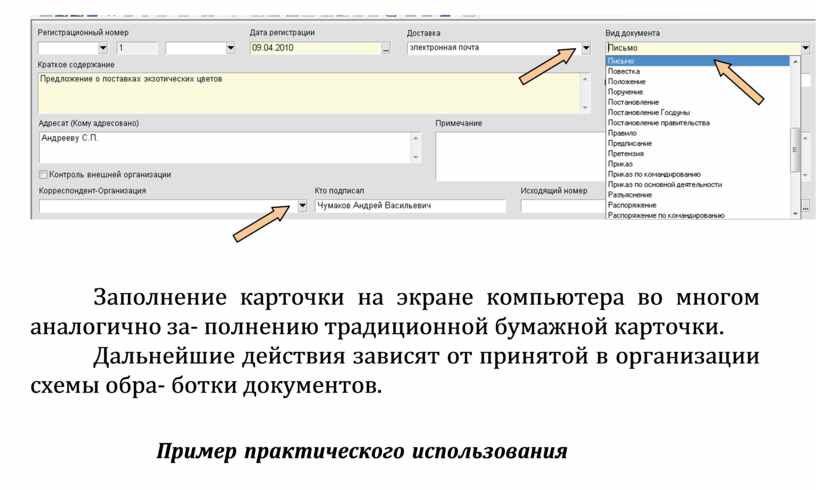Дальнейшие действия зависят от принятой в организации схемы обра- ботки документов.