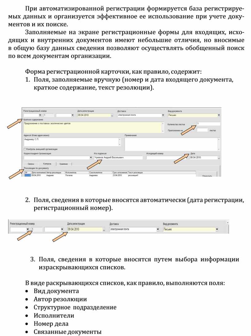 При автоматизированной регистрации формируется база регистрируе- мых данных и организуется эффективное ее использование при учете доку- ментов и их поиске.