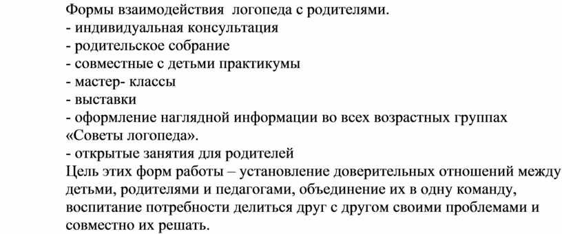 Цель этих форм работы – установление доверительных отношений между детьми, родителями и педагогами, объединение их в одну команду, воспитание потребности делиться друг с другом своими проблемами и совместно их решать.
