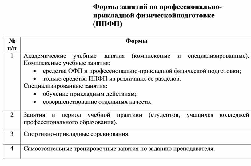 Формы занятий по профессионально-прикладной физической подготовке (ППФП)
