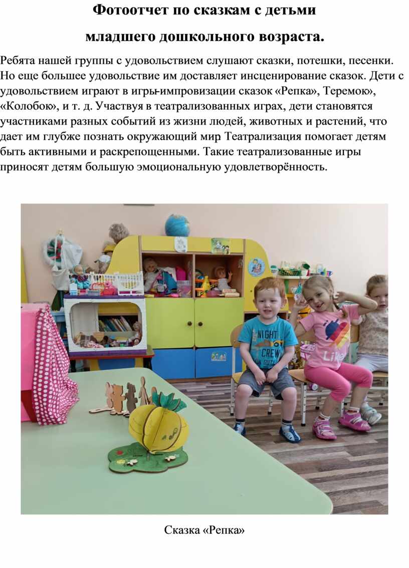 Ребята нашей группы с удовольствием слушают сказки, потешки, песенки. Но еще большее удовольствие им доставляет инсценирование сказок. Дети с удовольствием играют в игры-импровизации сказок «Репка», Теремок», «Колобок», и т. д. Участвуя в театрализованных играх, дети становятся участниками разных событий из жизни людей, животных и растений, что дает им глубже познать окружающий мир. Театрализация помогает детям быть активными и раскрепощенными. Такие театрализованные игры приносят детям большую эмоциональную удовлетворённость.