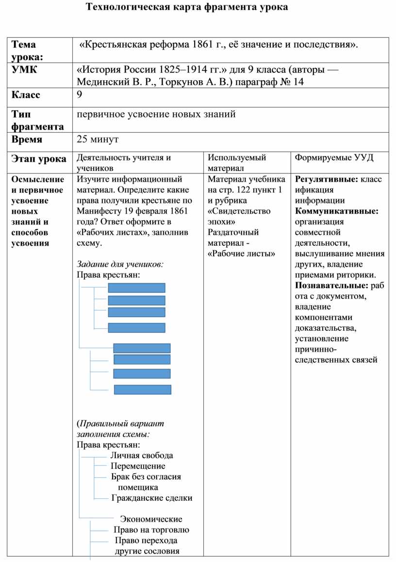 Фрагмент урока на тему: «Крестьянская реформа 1861 г., её значение и последствия».