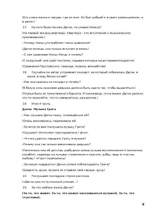 произведения Э. Грига; в предварительном чтении рассказа Паустовского; в