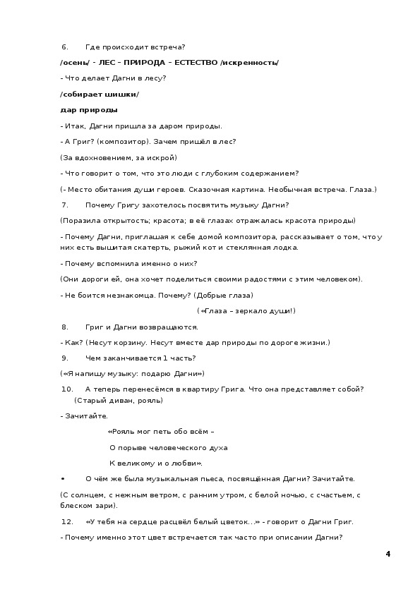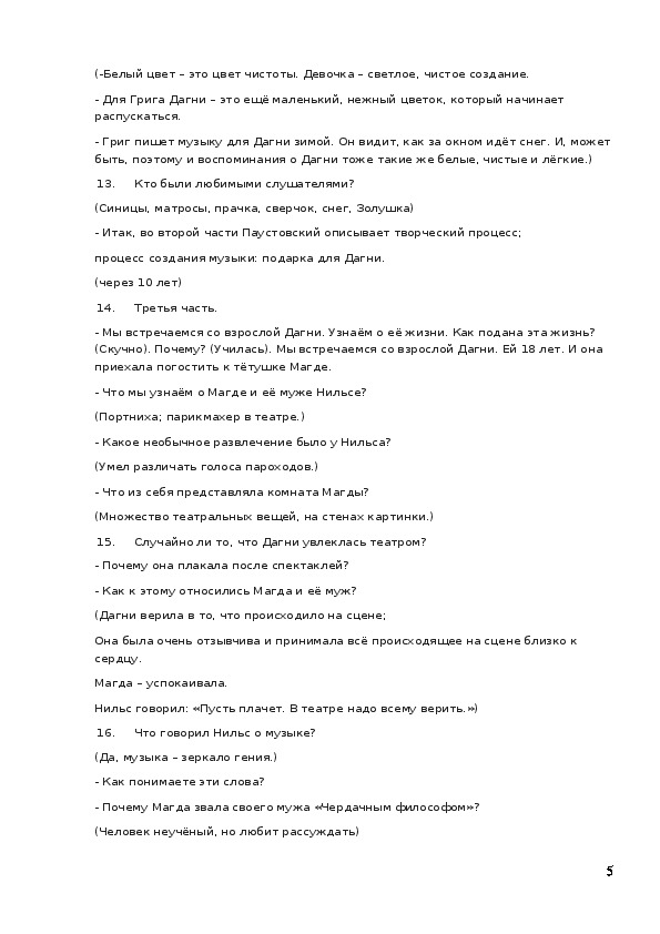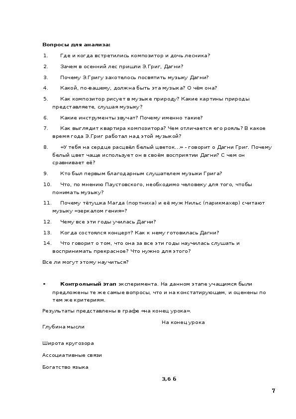 предметами, но были предложены учащимся вопросы по произведению Грига