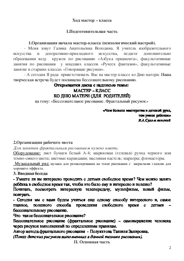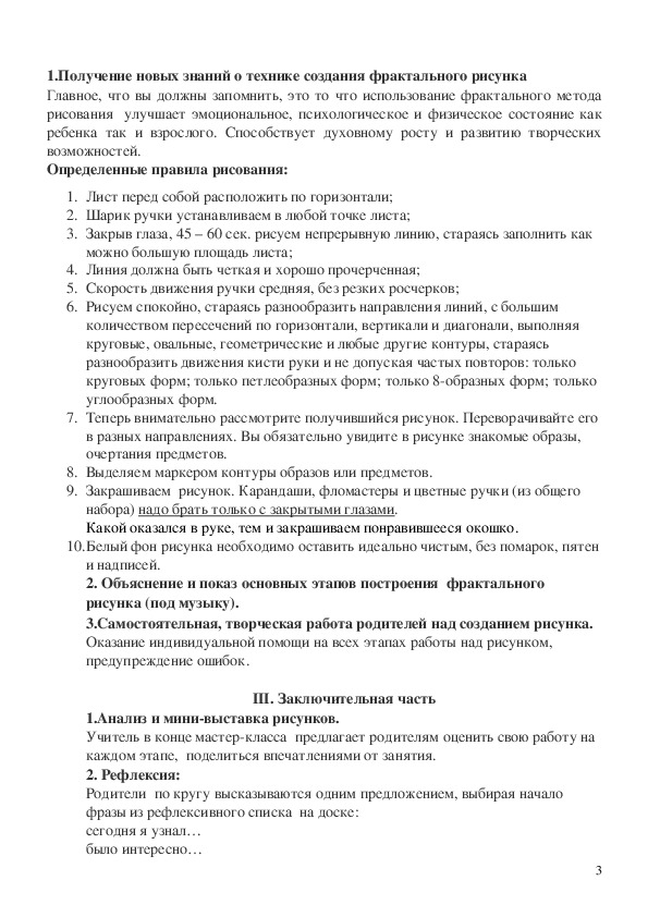 Цель: познакомить родителей с методикой бессознательного рисования (фрактальный рисунок).