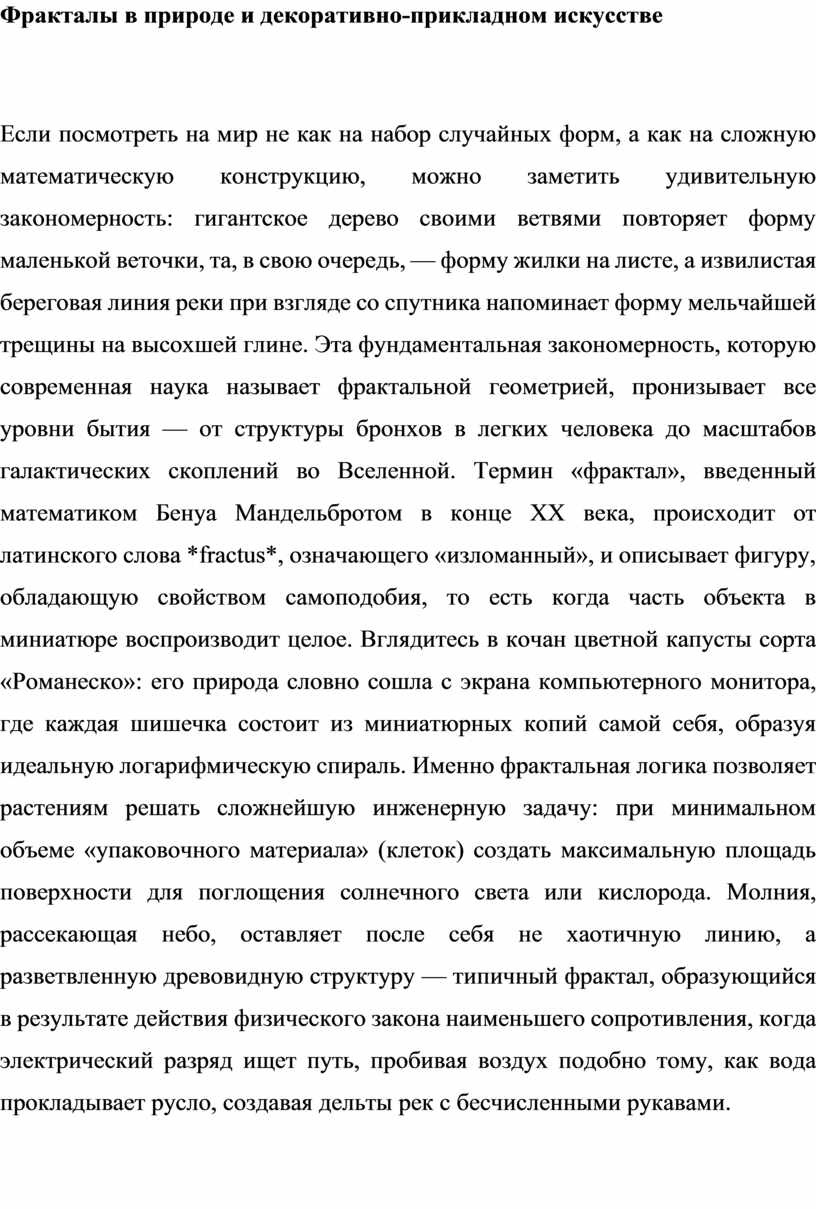 Фракталы в природе и декоративно-прикладном искусстве