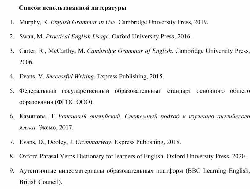 Список использованной литературы