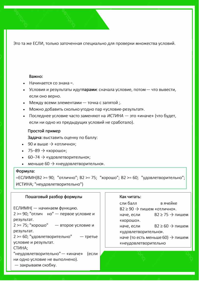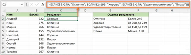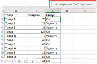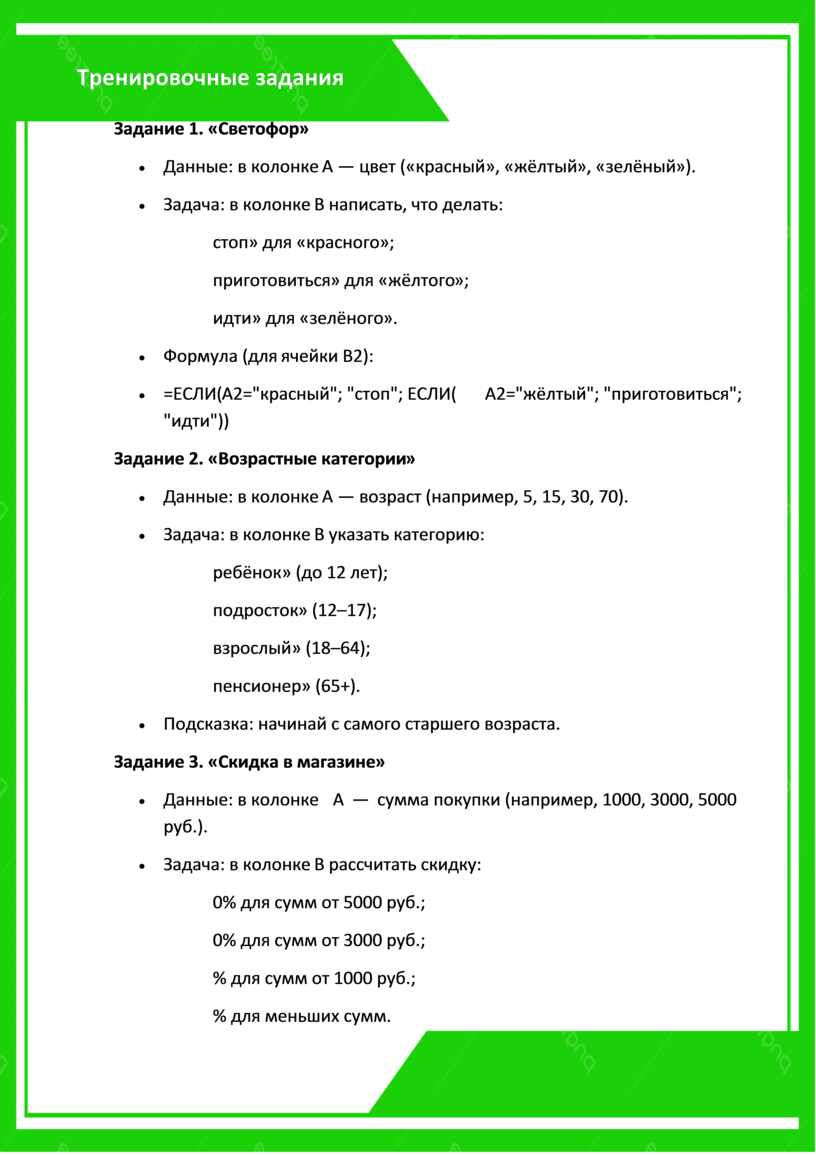 в колонке A — возраст (например, 5, 15, 30, 70).