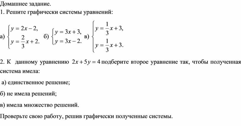 Проверьте свою работу, решив графически полученные системы.