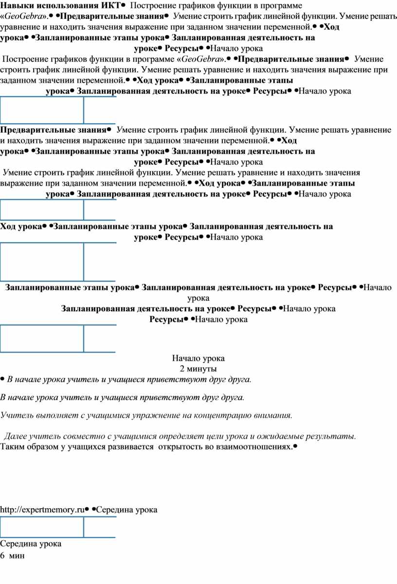 Запланированные этапы урока |