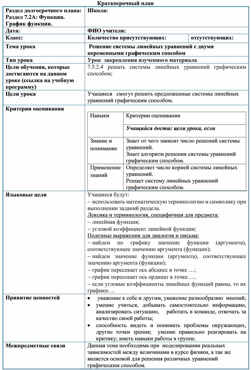 7.5.2.4 решать системы линейных уравнений графическим способом;