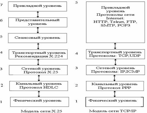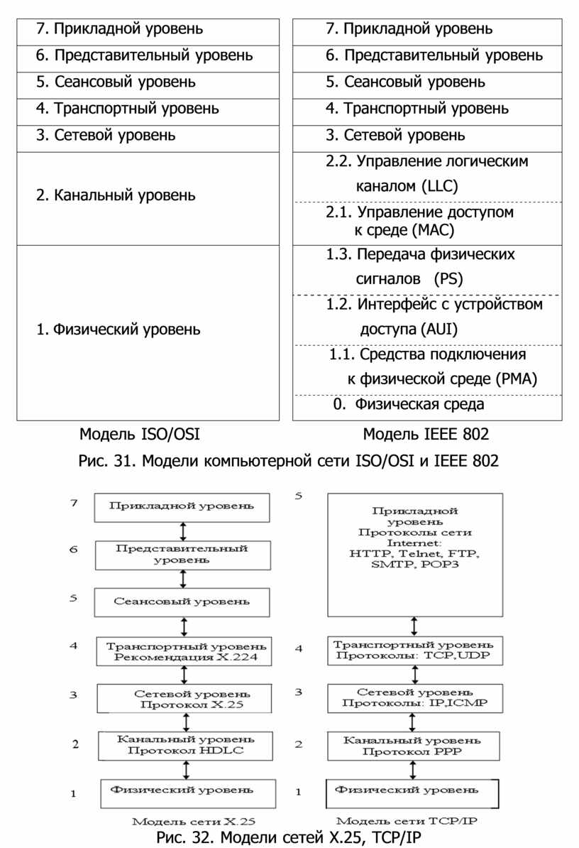 Рис. 32. Модели сетей X.25, TCP/IP