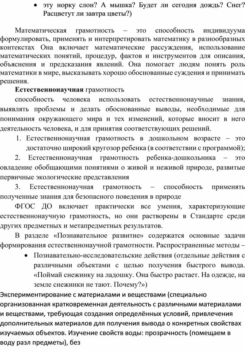 ФГОС ДО включает практически все умения, характеризующие естественнонаучную грамотность, но они растворены в Стандарте среди других предметных и метапредметных результатов.