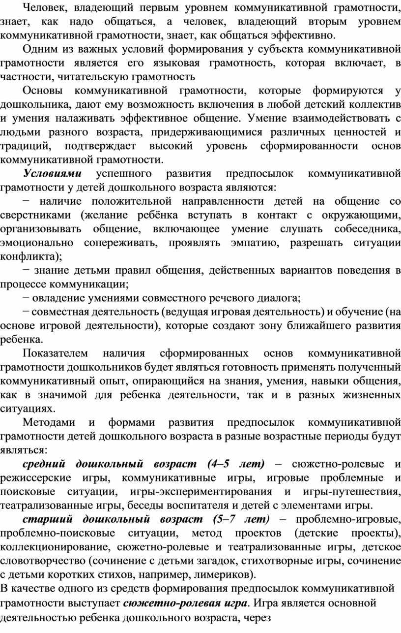 Условиями успешного развития предпосылок коммуникативной грамотности у детей дошкольного возраста являются: