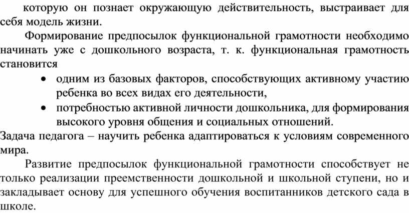 Формирование предпосылок функциональной грамотности необходимо начинать уже с дошкольного возраста, т. к. функциональная грамотность становится
