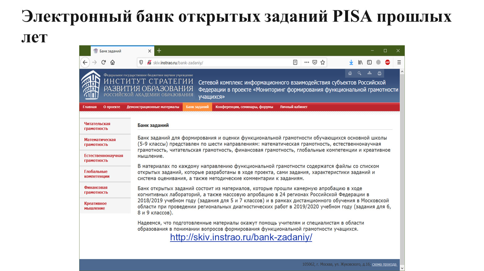 Доступен электронный банк заданий в PISA-формате для проведения тренировочных работ: