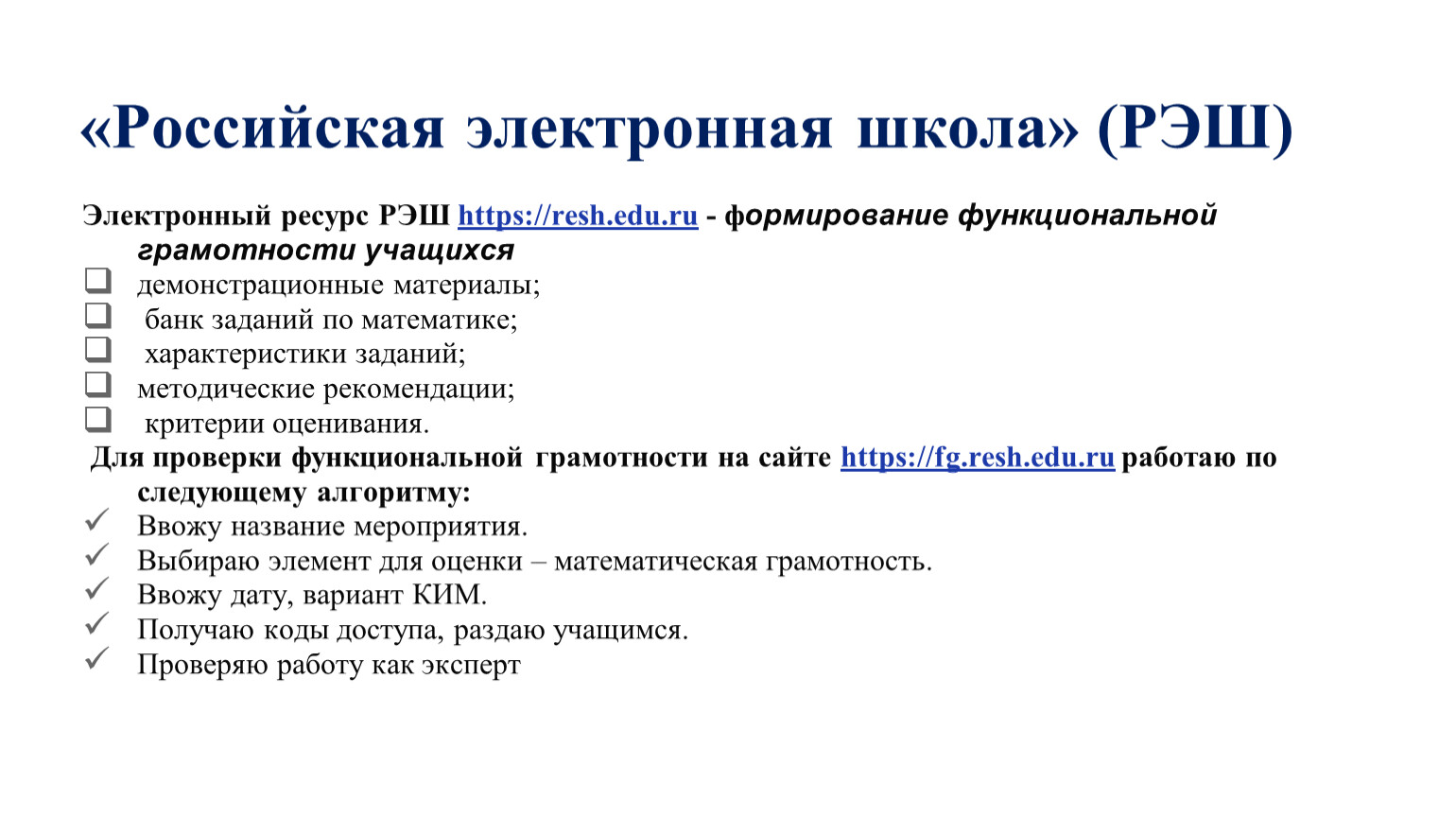 Электронный ресурс РЭШ https://resh.edu.ru - формирование функциональной грамотности учащихся