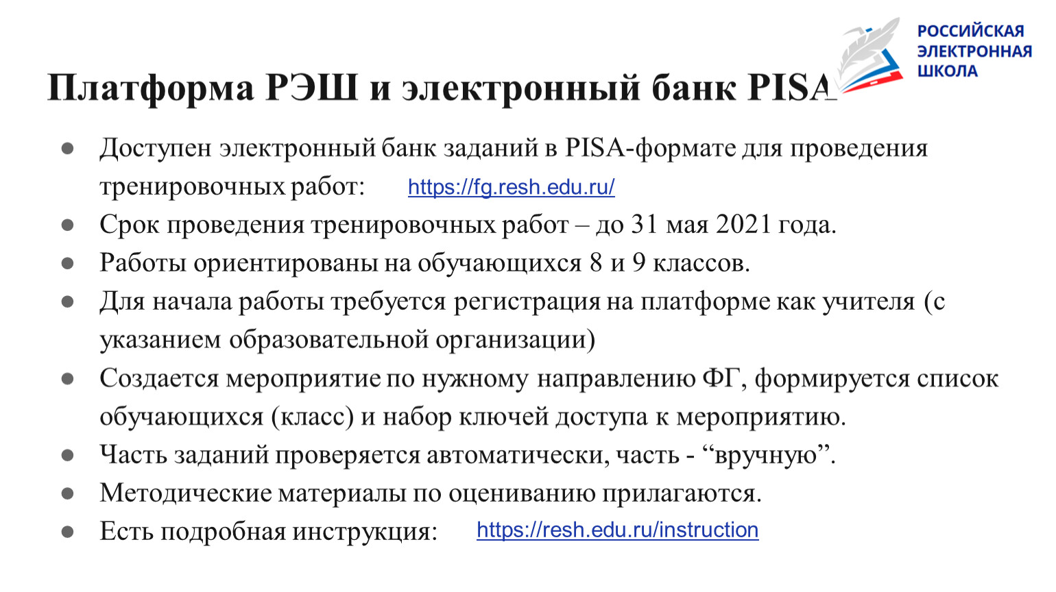 Платформа РЭШ и электронный банк PISA