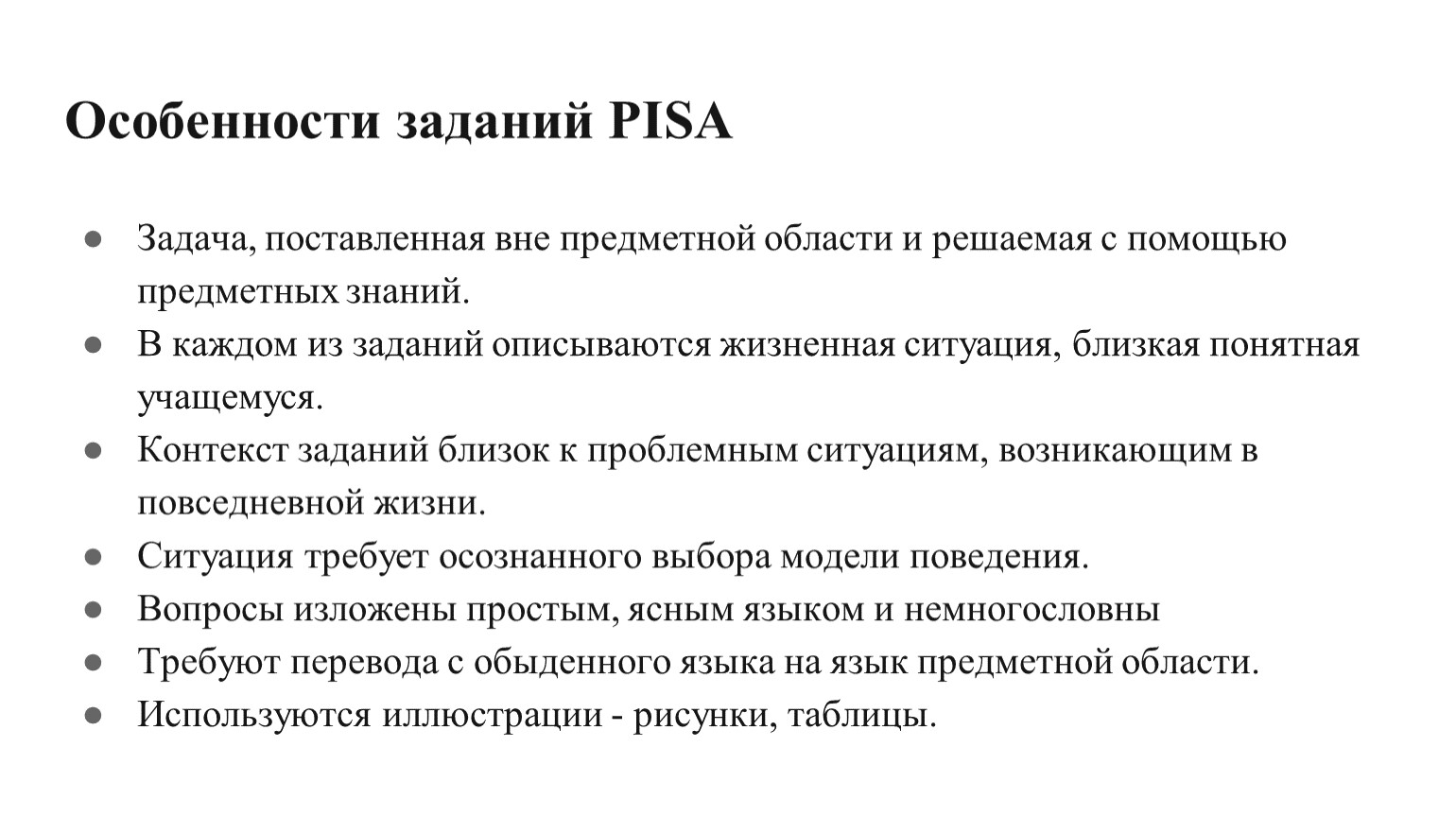Особенности заданий PISA