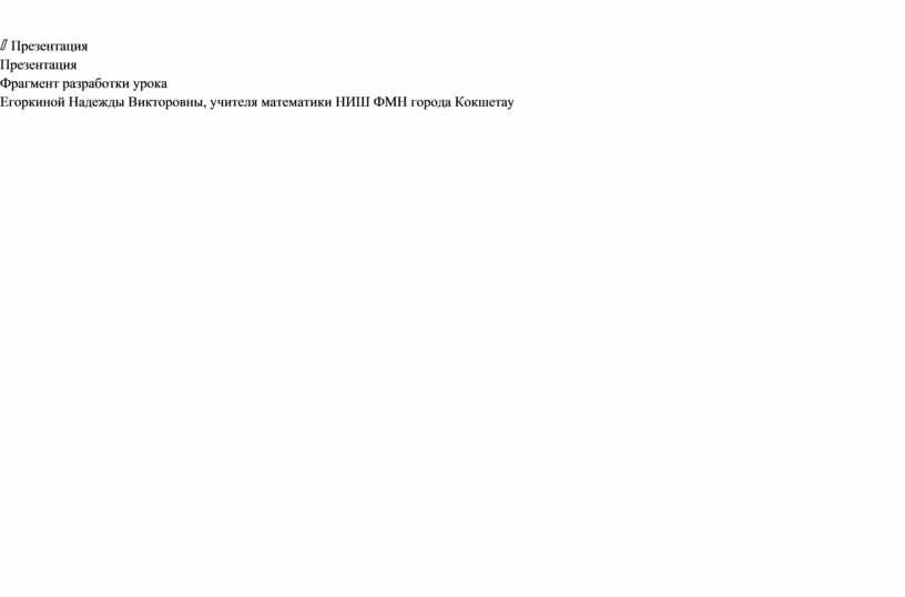 Презентация Фрагмент разработки урока Егоркиной Надежды Викторовны, учителя математики НИШ ФМН города Кокшетау