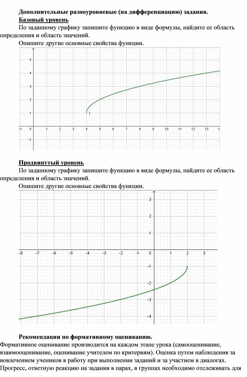 По заданному графику запишите функцию в виде формулы, найдите ее область определения и область значений.