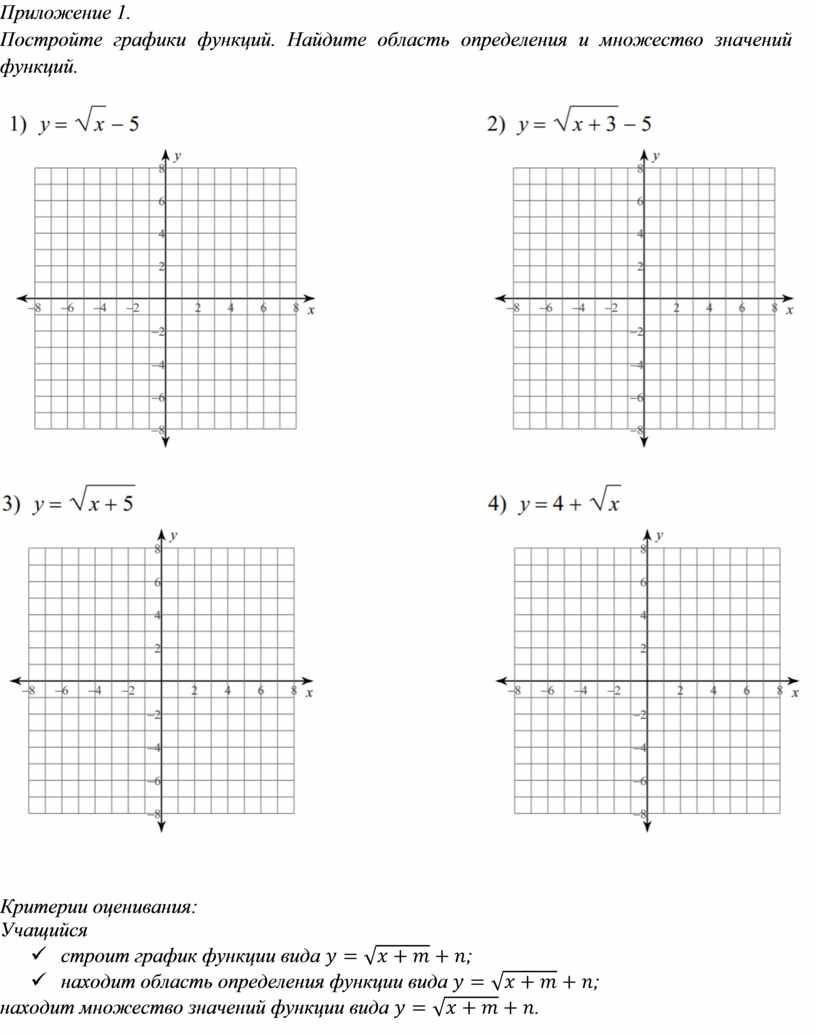 Постройте графики функций. Найдите область определения и множество значений функций.