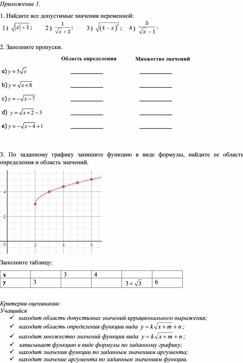 3. По заданному графику запишите функцию в виде формулы, найдите ее область определения и область значений.