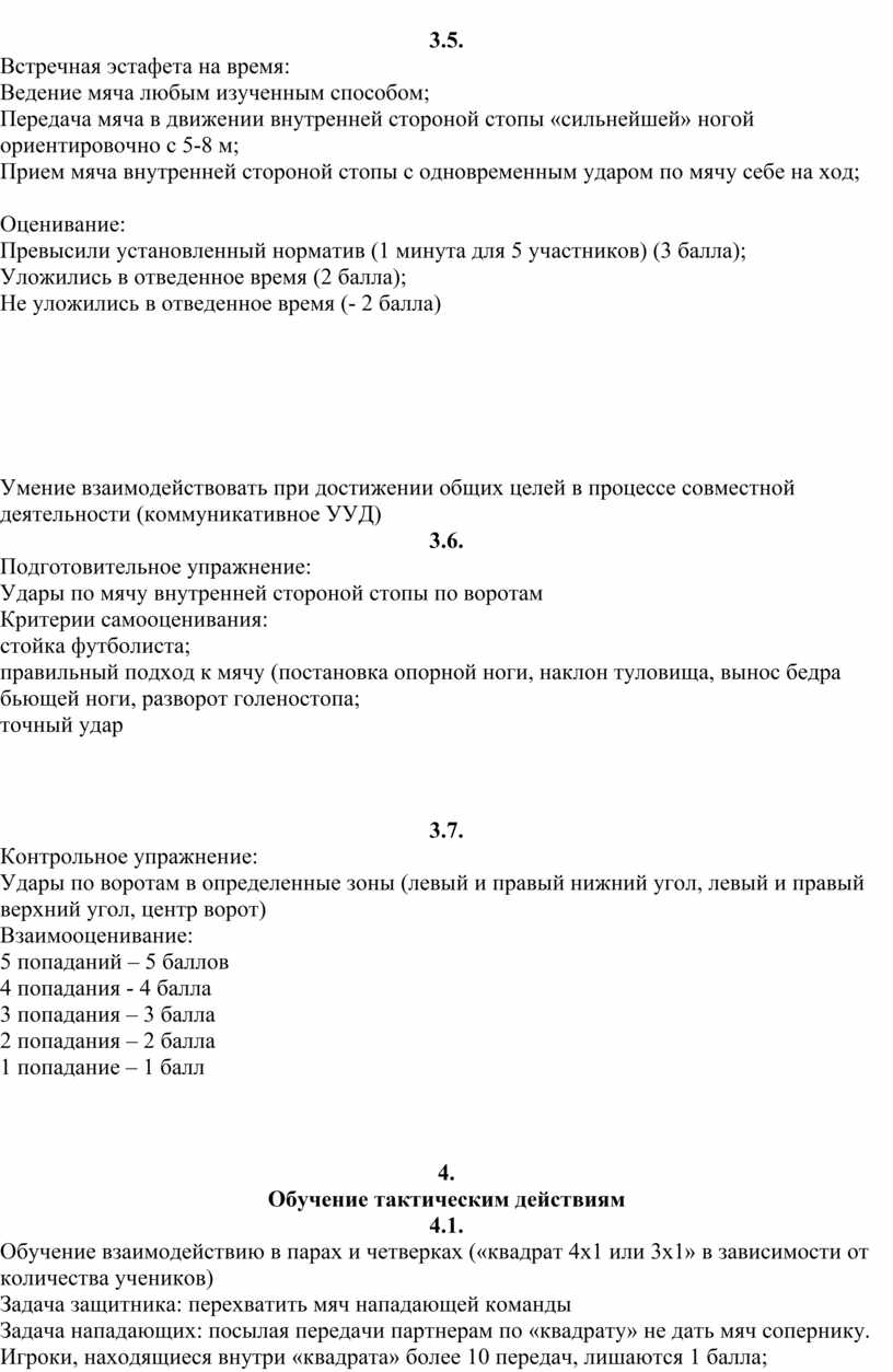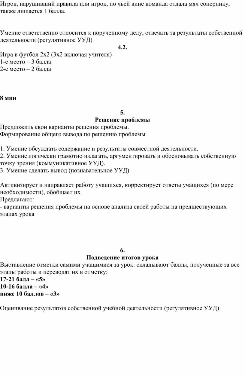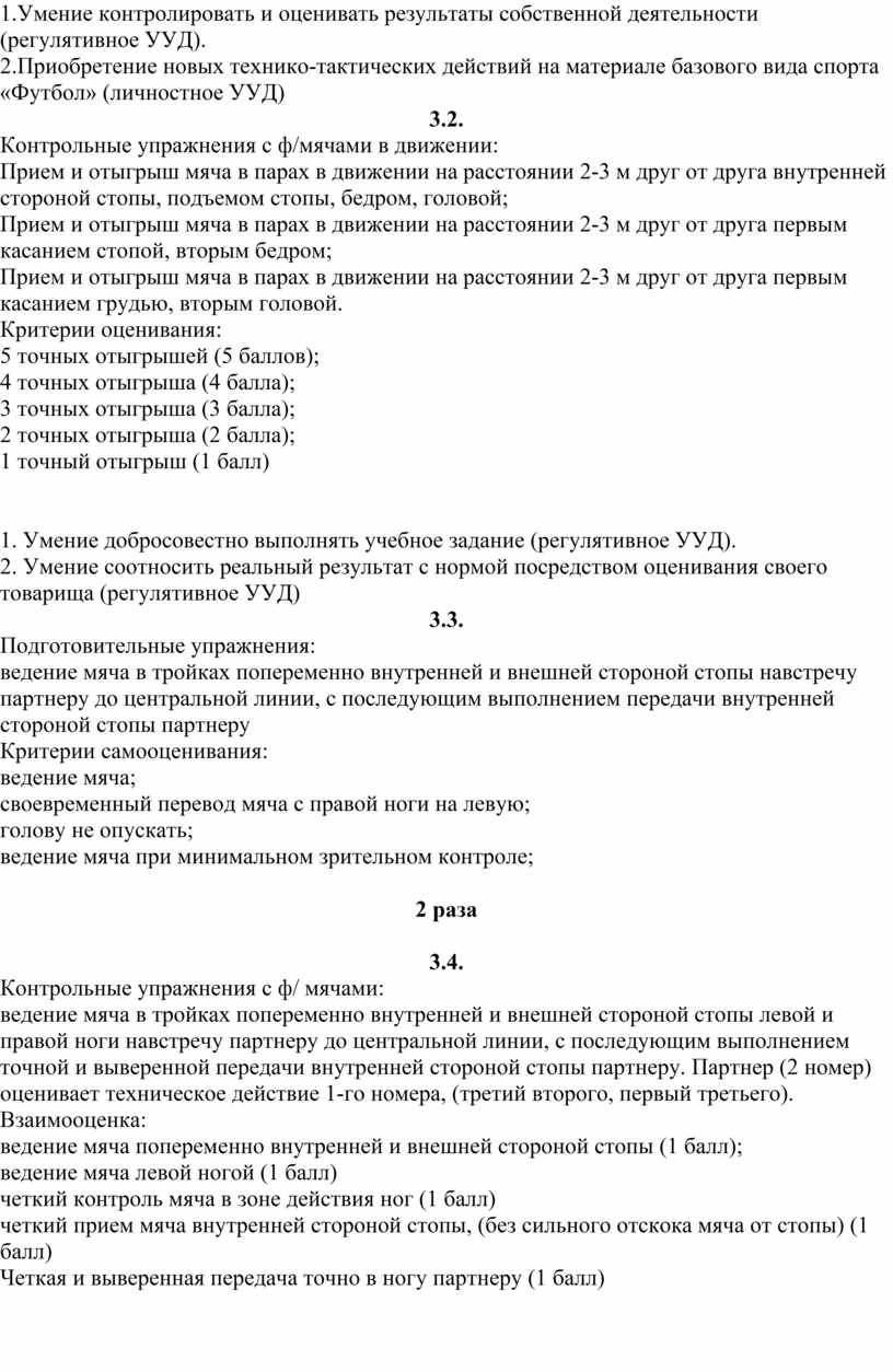 2.Приобретение новых технико-тактических действий на материале базового вида спорта «Футбол» (личностное УУД)