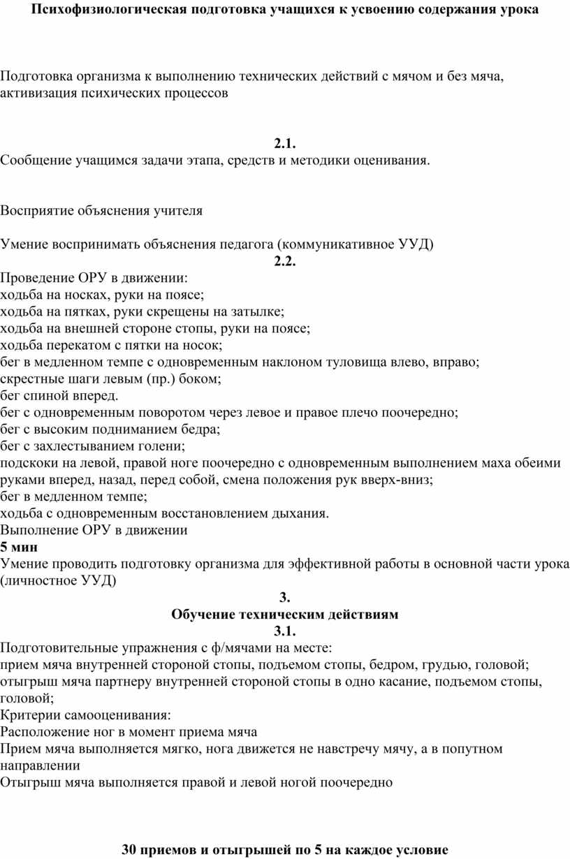 Подготовка организма к выполнению технических действий с мячом и без мяча, активизация психических процессов