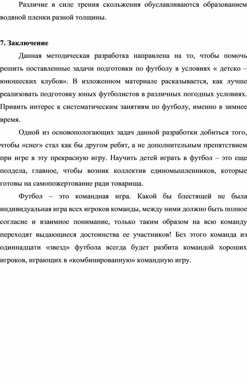 Данная методическая разработка направлена на то, чтобы помочь решить поставленные задачи подготовки по футболу в условиях « детско – юношеских клубов». В изложенном материале расказывается, как лучше реализовать подготовку юных футболистов в различных погодных условиях. Привить интерес к систематическим занятиям по футболу, именно в зимнее время.