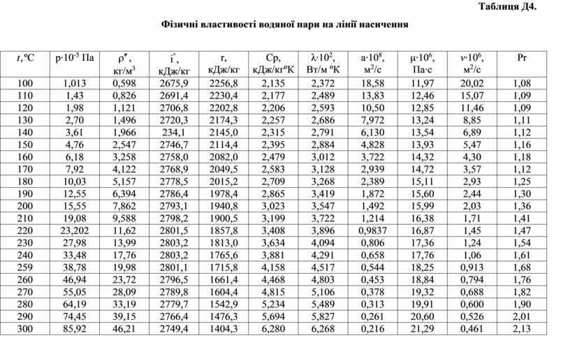 Фізичні властивості водяної пари на лінії насичення
