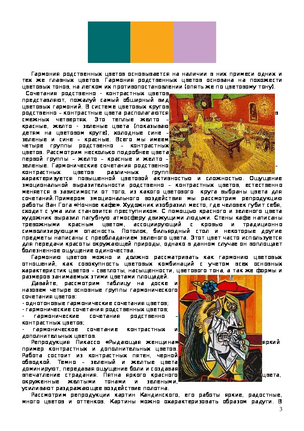 примерах цветовых таблиц, репродукций с работ художников.