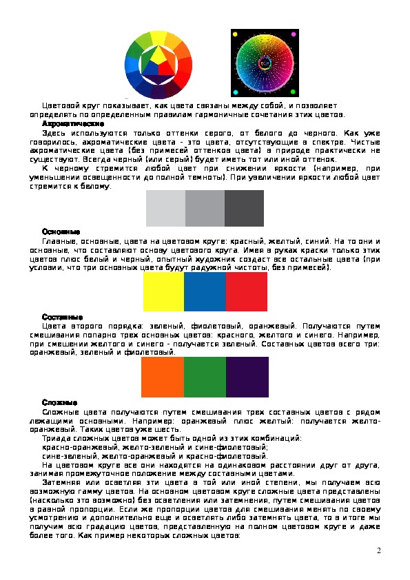 возможную гамму цветов. На основном цветовом круге сложные цвета представлены