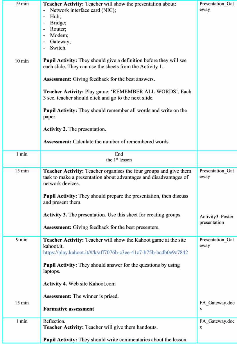 Teacher Activity: Teacher will show the presentation about: - Network interface card (NIC); - Hub; - Bridge; - Router; - Modem; - Gateway; - Switch.