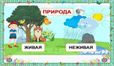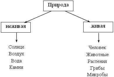 А сейчас мы с вами поиграем. Игра называется «Живое -неживое». Учитель называет слова. Если оно обозначает объект живой природы, дети делают хлопок в ладоши, если слово обозначает объект неживой природы –учащиеся выполняют приседание. (Вода, дуб, воробей, капуста, камень, облако, медведь, песок, обезьяна, липа, комар, почва, гриб.) |