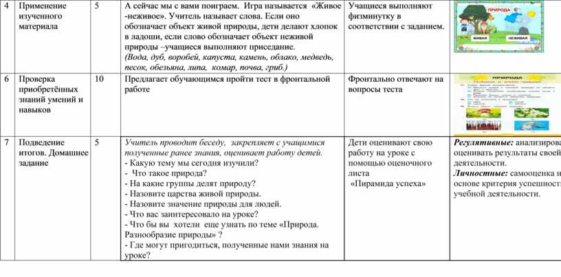 ТЕХНОЛОГИЧЕСКАЯ КАРТА УРОКА ПО ОКРУЖАЮЩЕМУ МИРУ