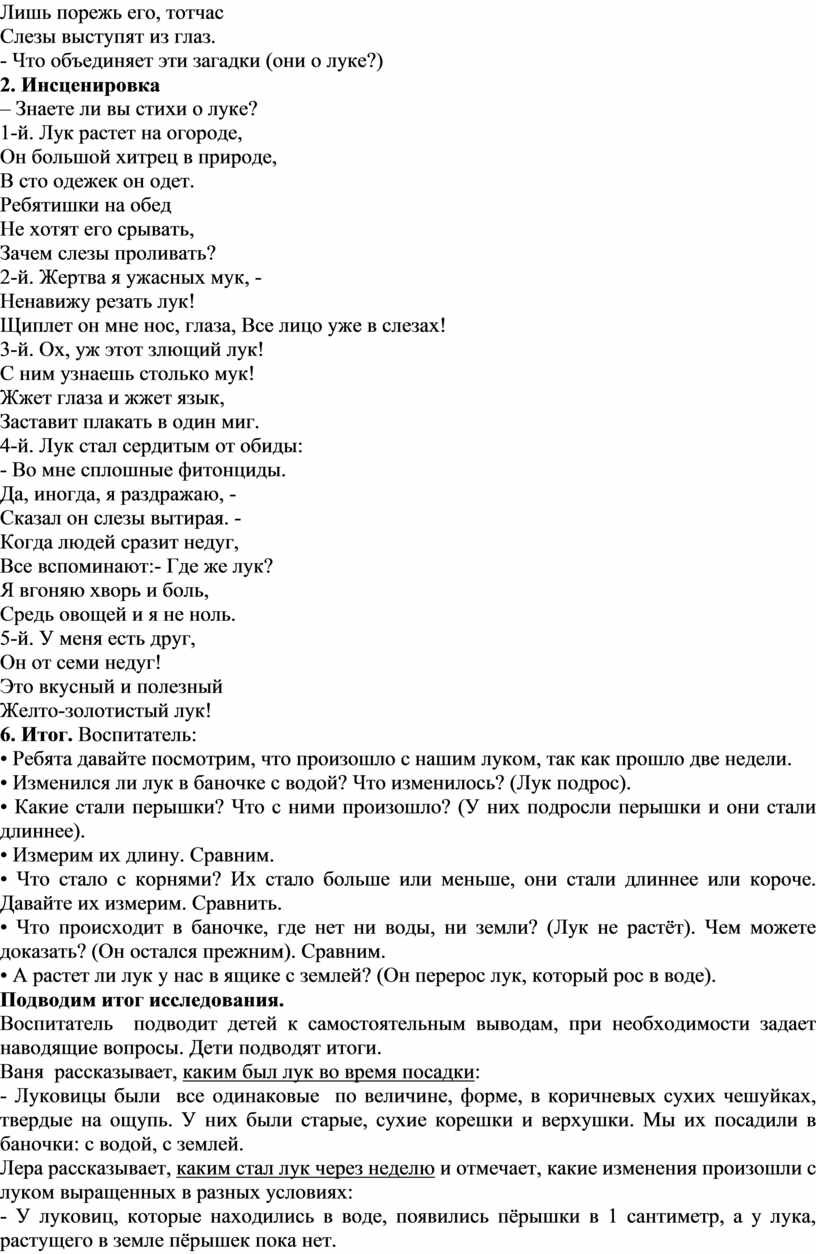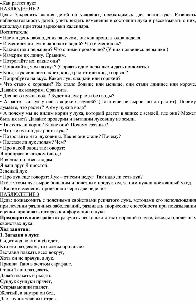 2. План-конспект по теме: «Посадка лука», «Как растёт лук», «Какие изменения произошли через две недели».