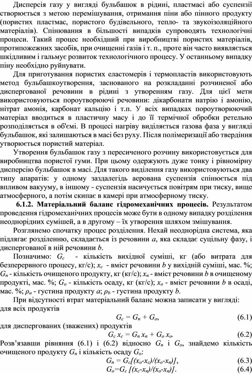 6.1.2. Матеріальний баланс гідромеханічних процесів. Результатом проведення гідромеханічних процесів може бути в одному випадку розділення неоднорідних сумішей, а в другому – їх утворення шляхом змішування.