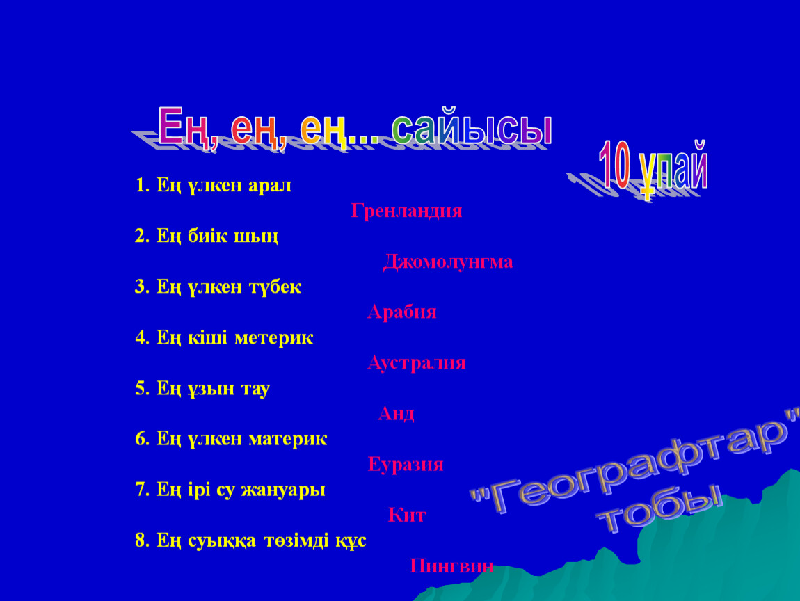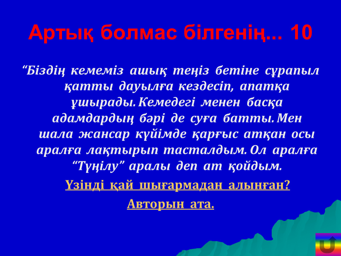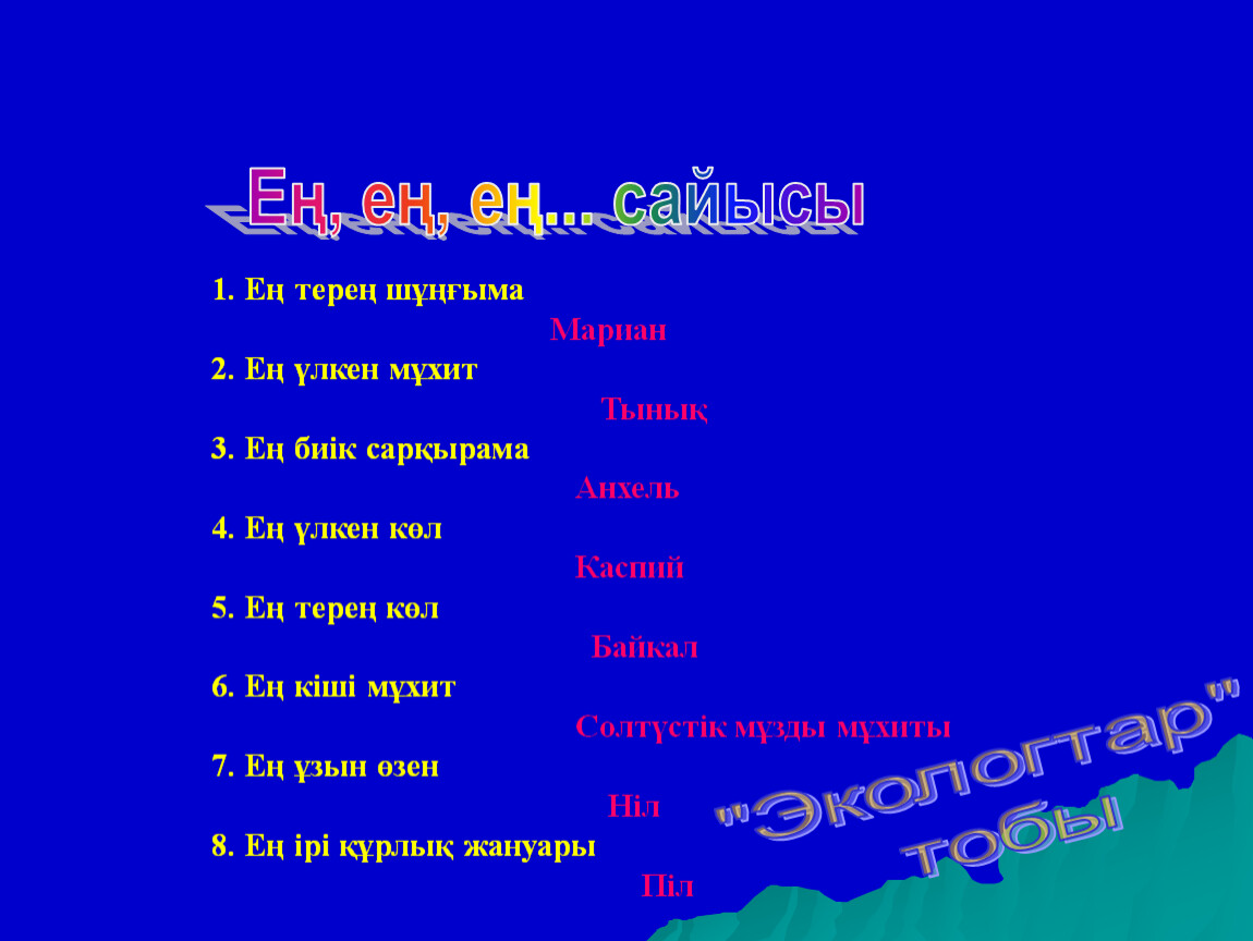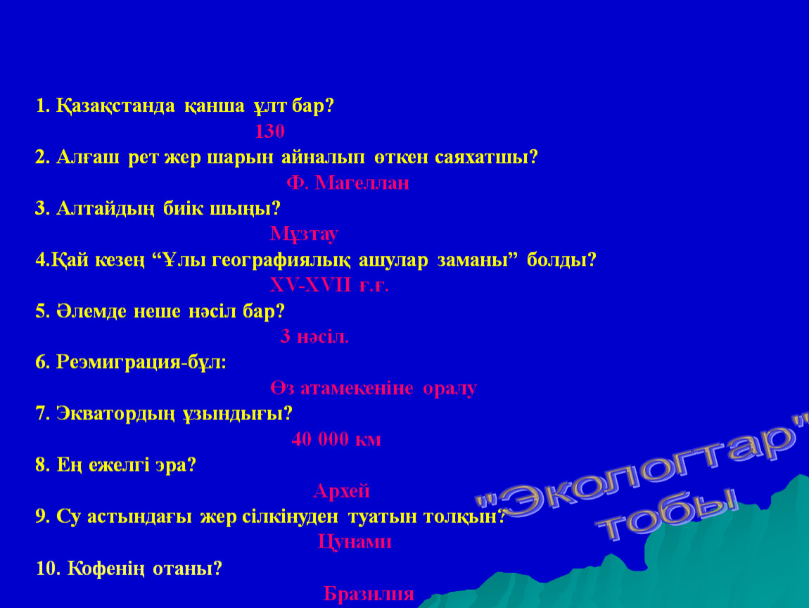 Өзіңді сынап көр.Викторина сұрақтары.