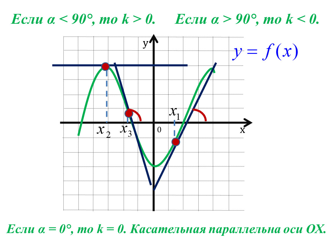 Геометрический смысл производной: если к графику функции y = f(x)