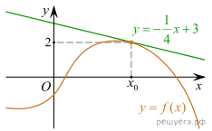 На рисунке изображён график функции y=f(x) и касательная к нему в точке с абсциссой x0. Найдите значение производной функции f(x) в точке x0.