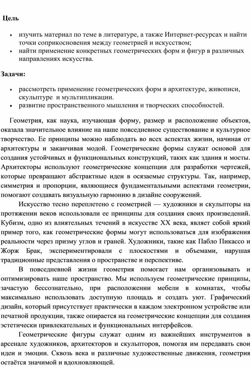 Геометрия и искусство постоянно взаимодействуют друг с другом, проникают друг в друга, подчиняясь законам и принципам.