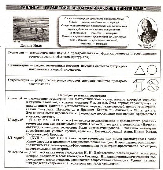 Геометрия в схемах, терминах, таблицах